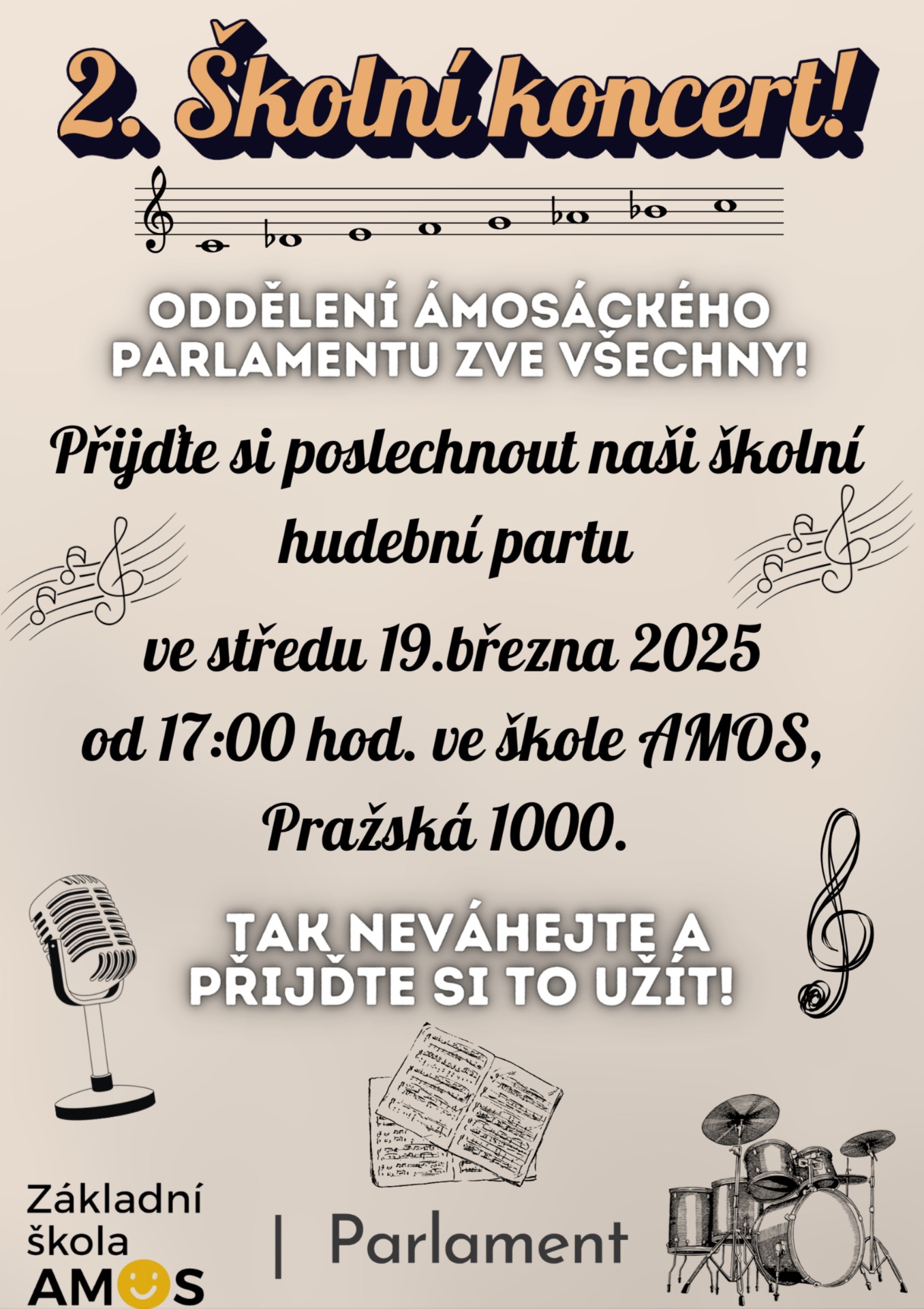 Již 26. březnu se bude v naší škole odehrávat 3. školní koncert, tak neváhejte a přijďte si ho polsechnout!